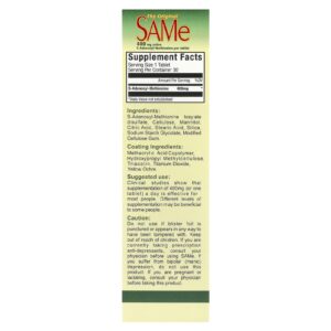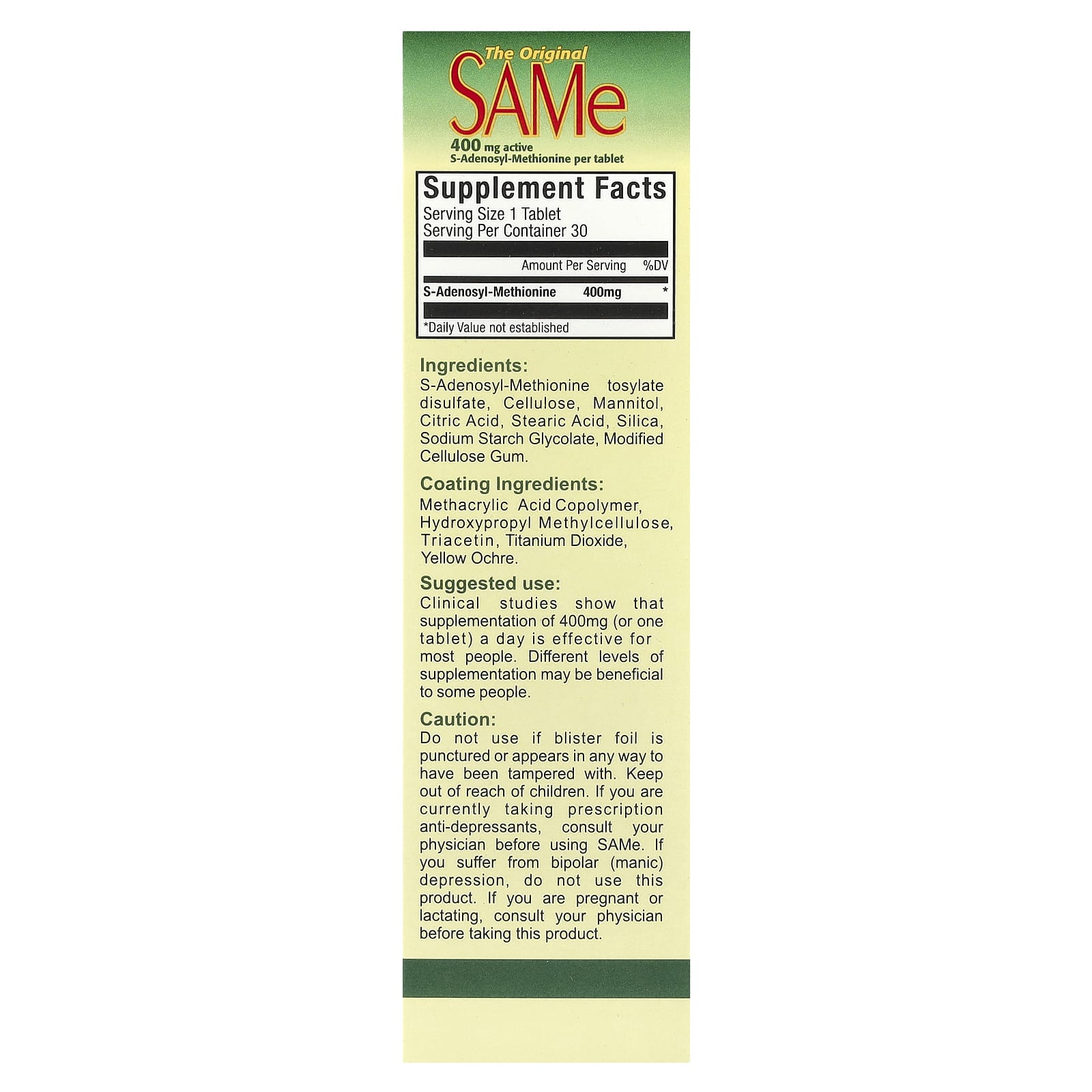 - Cada comprimido de NutraLife SAMe contém 400 mg de S-adenosilmetionina ativa e é fabricado em total conformidade com as GMP.