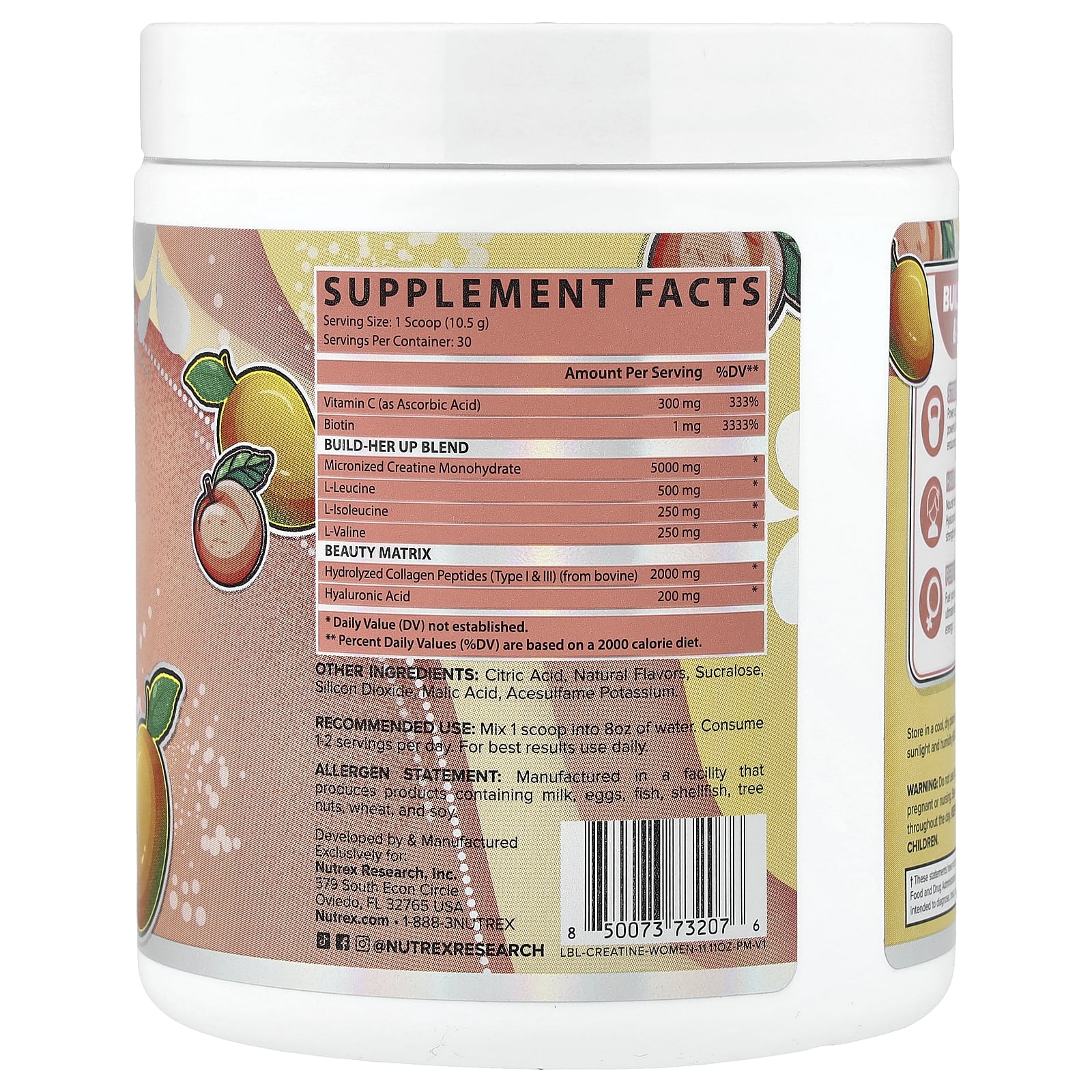 Nutrex Research Creatina para Mulheres + Booty e Beauty Pêssego e Manga 31498 g (1111 oz) – Nutrex Research Nutrição Esportiva Creatina Monoidrato de creatina Creatina Micronizada.