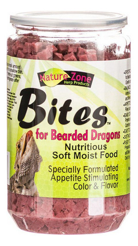 Nature Zone Ready-to-Eat Bites for Bearded Dragons é um alimento macio, úmido e pronto para comer, desenvolvido para dragões barbudos. A cor do vinho e o sabor do cacto de pera espinhosa atraem o dragão barbudo e o mantêm comendo esta dieta saudável enriquecida com vitaminas e minerais. Pedaços pequenos formulados especificamente para dragões barbudos contêm 51 aminoácidos nutricionais, vitaminas e minerais. Polvilhe em um prato raso para alimentar e refrigerar após a abertura, pré-corte, exceto nos tamanhos de 1 galão e BULK 6 galões. Nota: Devido a uma mudança de fabricante, a banheira de 1 galão e a BULK de 6 galões contêm Picadas de dragão barbudo que não são pré-cortadas. Ingredientes: água, proteína de soro de leite, proteína de soja, ovo seco em spray, maltodextrina, sacarose, frutose, carragenina, goma de alfarroba, lecitina, carbonato de cálcio, óleo de germe de trigo, sabor natural e artificial, lactato de cálcio, sorbato de potássio, fosfato dicálcico, ácido ascórbico, ácido cítrico, cloreto de sódio, Cloreto de potássio, benzoato de sódio, metilparabeno, betacaroteno, licopeno, beterraba em pó, propilparabeno, ogliofrutose, extrato de Yucca Schidigera, cloreto de colina, quelato de aminoácidos de ferro, F D e C Red 40, F D e C Red 40, F D e C Azul 1, selenito de sódio, niacina, mononitrato de tiamina, quelato de aminoácidos de manganês, quelato de aminoácidos de cobre, vitamina B12, complexo de bussulfito de sódio de menadiona, ácido fólico, cloridrato de piridoxina, riboflavina, pantotenato de cálcio, vitamina D3, iodato de cálcio, biotina. Análise garantida: proteína bruta (min) – 9% Gordura (min) – 2% de fibra bruta (máx) – 7% de umidade (máx) – 78%