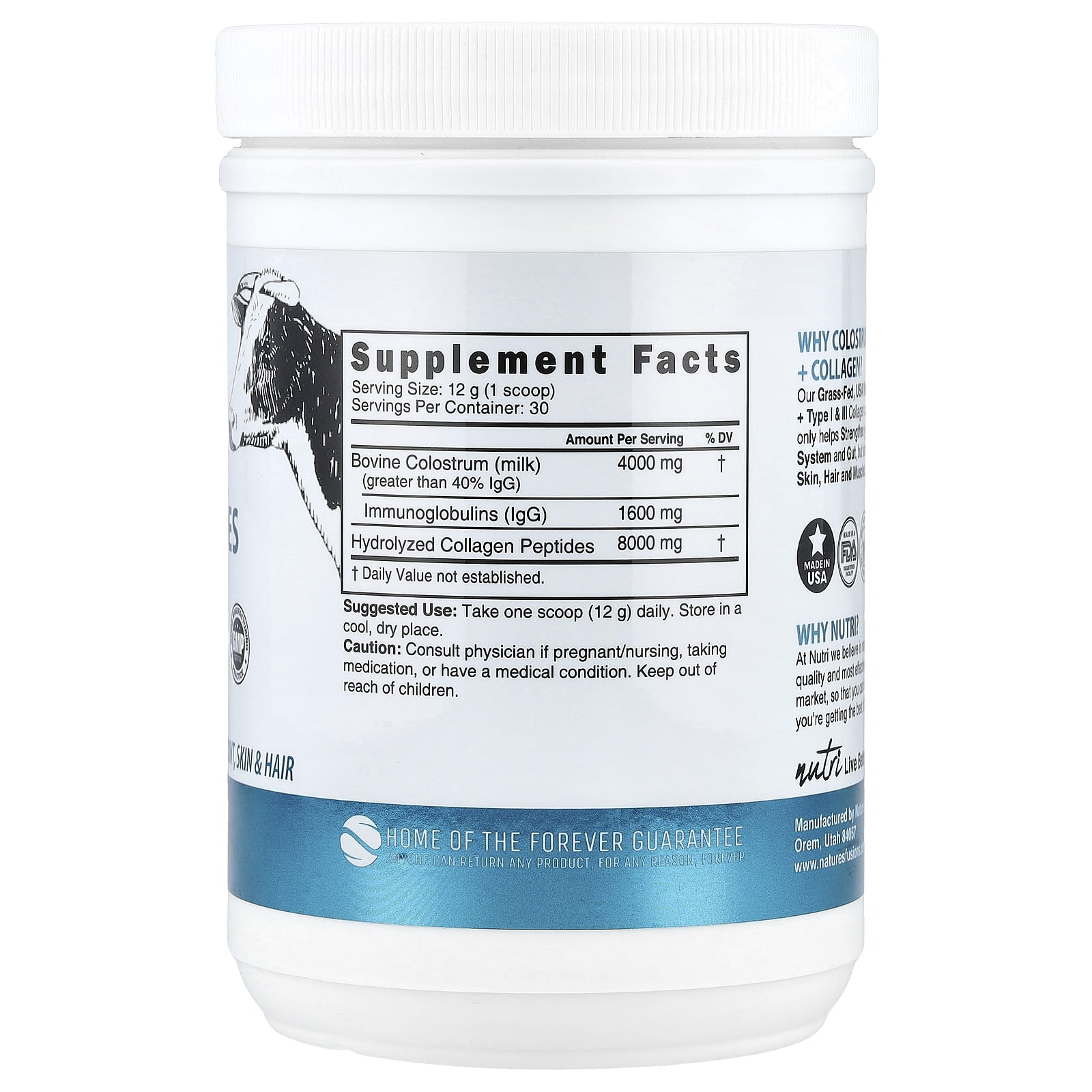 Nutri Colostro + Peptídeos de Colágeno Sem Sabor 360 g (127 oz) – Nutri Suplementos Saúde Intestinal Colostrum Ossos, Articulações e Cartilagem Colágeno, Suplementos.