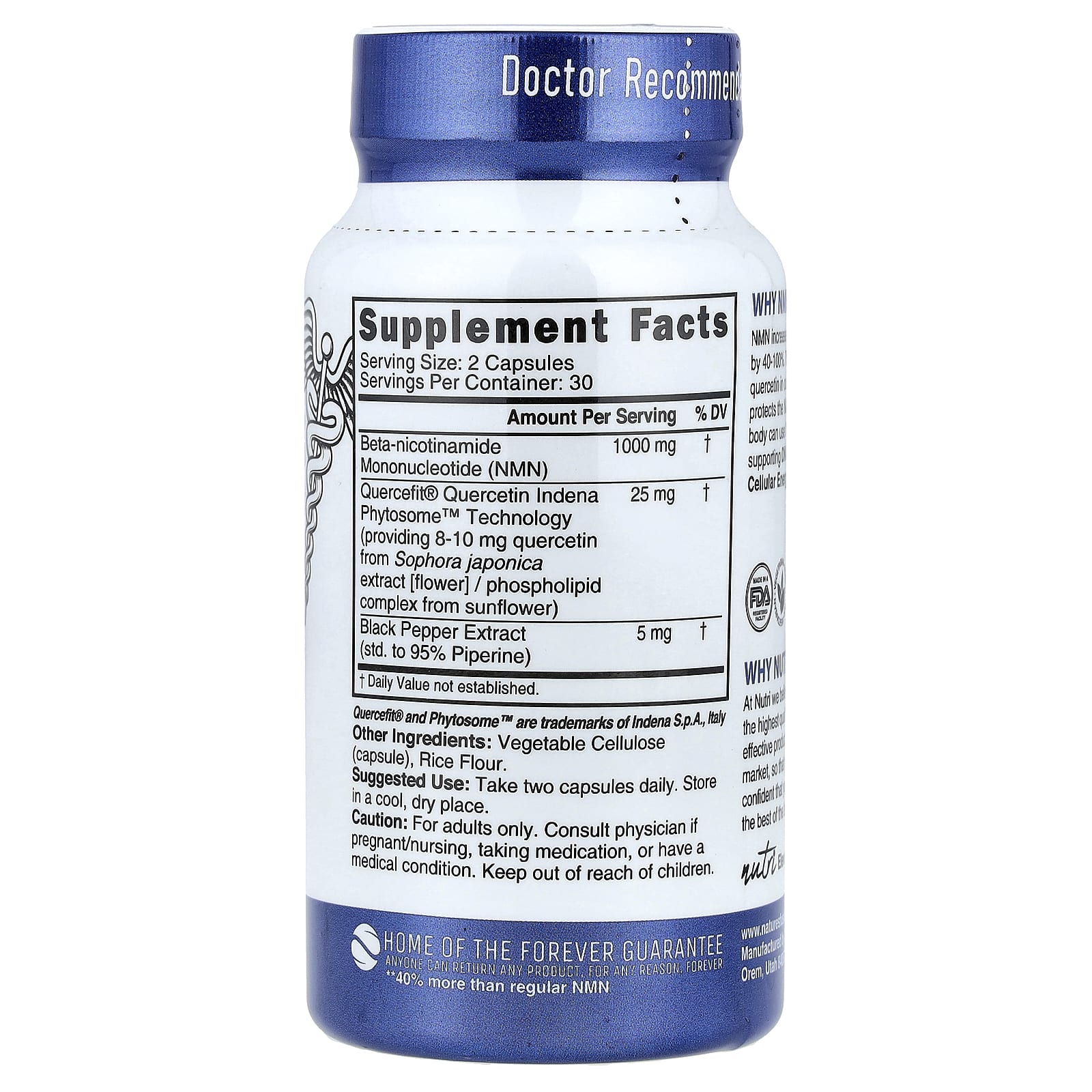 Nutri NMN+ Força Máxima 60 Cápsulas Veganas – Nutri Suplementos Vitaminas Vitamina B Vitamina B3 (Niacina) NAD+ (Nicotinamida Adenina Dinucleotídeo) Mononucleotídeo de Nicotinamida (NMN).