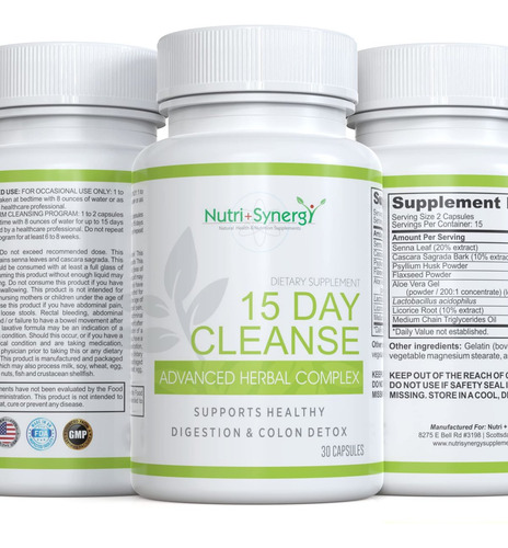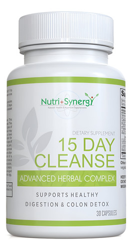 Complexo fitoterápico avançado Nutri + Synergy 15 Day Cleanse – Limpeza e desintoxicação do cólon – Melhora a saúde intestinal Programa de limpeza e desintoxicação do
