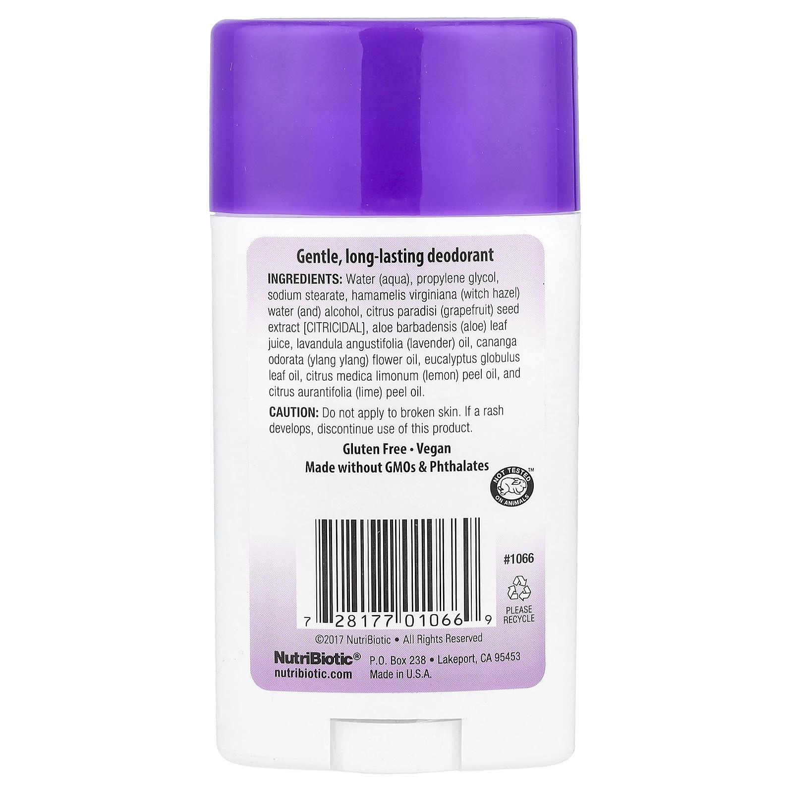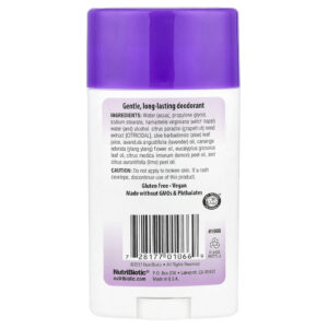 O Desodorante de Lavanda NutriBiotic® é um desodorante suave e de longa duração com hamamélis, extrato da semente de toranja, aloe e óleos essenciais.