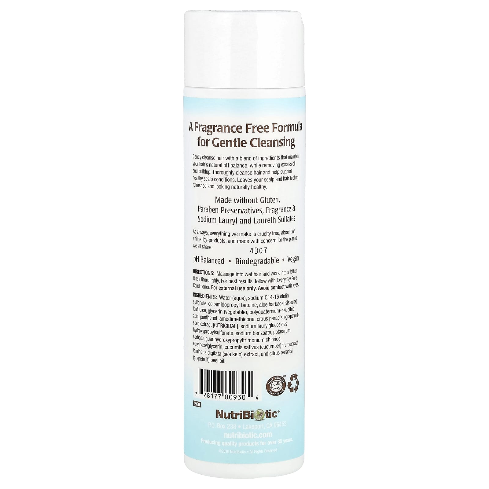 NutriBiotic Shampoo Everyday Pure Sem Perfume 296 ml (10 fl oz) – NutriBiotic Banho e Cuidados Pessoais Cabelos Shampoo.