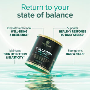 • ?Nutrição e rejuvenescimento? A resiliência do colágeno é um suplemento formulado para nutrir a pele e ajudar o corpo a recuperar seu equilíbrio, apoiando auto-reparo eficiente.