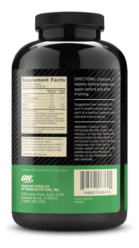 Tablets de contagem de amino superior à nutrição ideal. Mais de 2 gramas do total de aminos. Fornece 18 tipos diferentes de aminoácidos. Formulário L-Carnitina e L-Oritina.