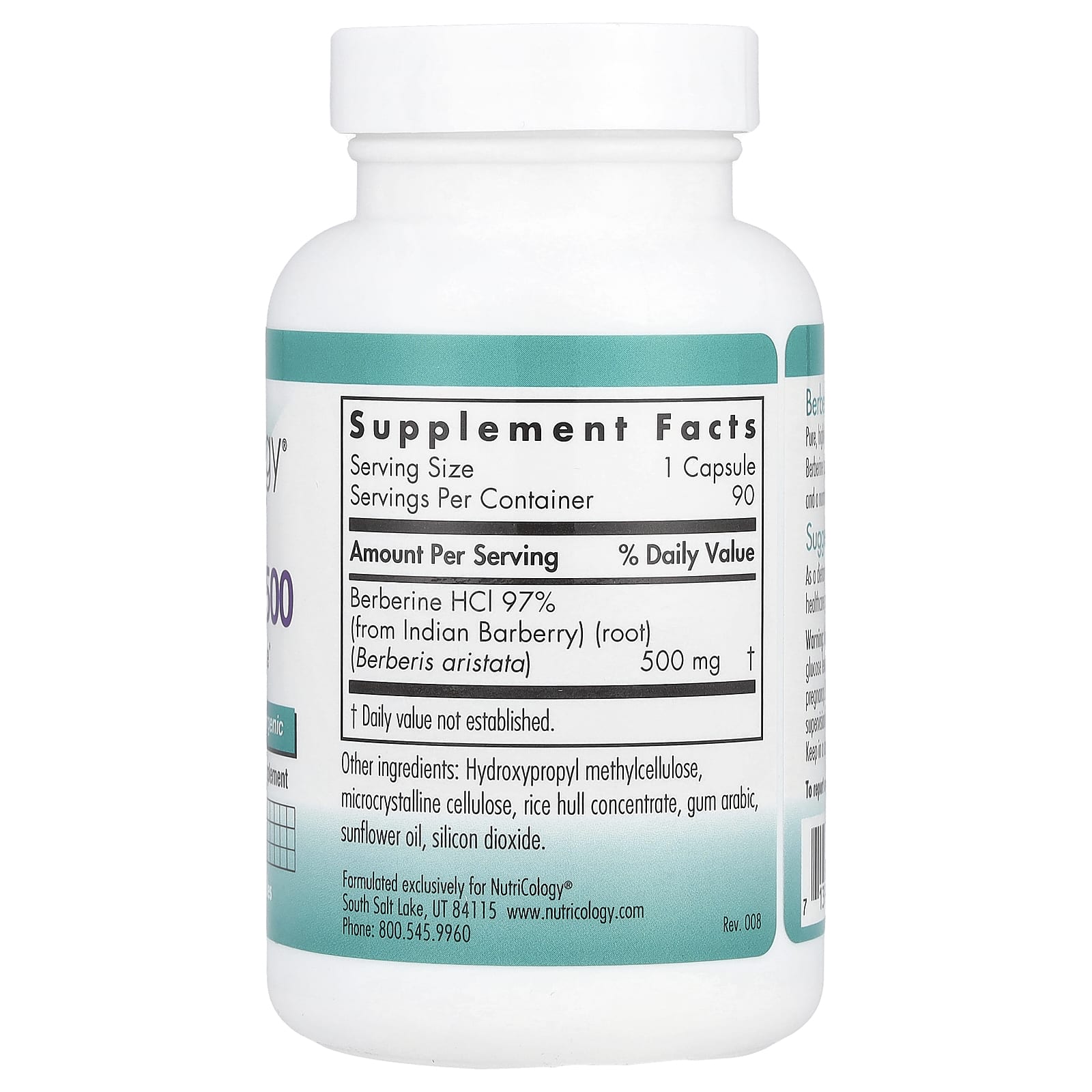 Nutricology Berberina 500 90 Cápsulas Vegetais – Nutricology Suplementos Ervas Berberina.