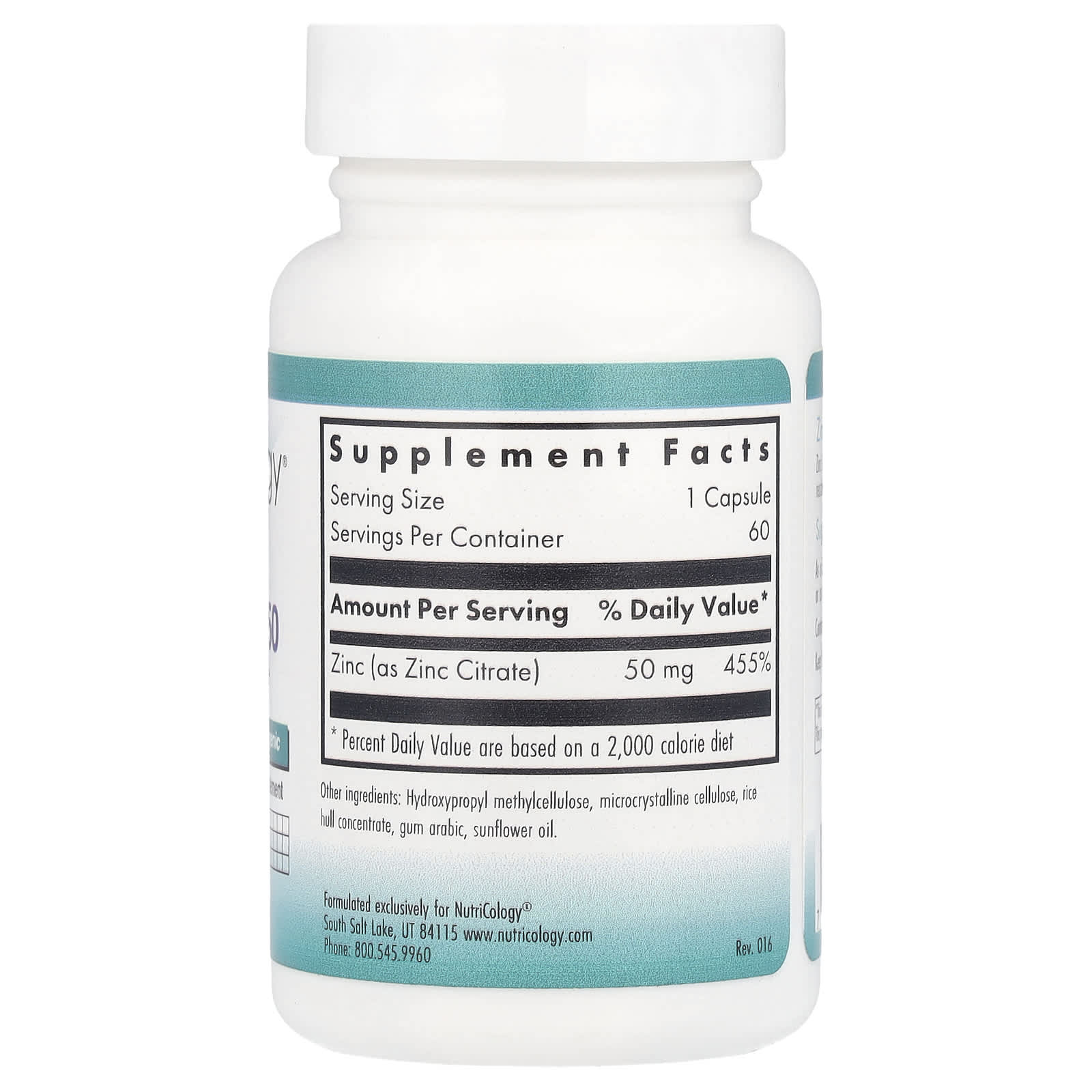 Nutricology Citrato de Zinco 50 60 Cápsulas Vegetarianas – Nutricology Suplementos Minerais Zinco Citrato de Zinco Saúde Gripe e Resfriado.