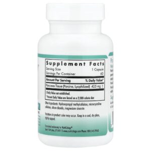 Fornece tecido pancreático. Nosso material glandular natural é derivado de animais criados soltos e inspecionados pelo governo, criados na Nova Zelândia e na Austrália, cujas regulamentações de produção animal estão entre as mais rígidas do mundo. O material é liofilizado, o que significa que é imediatamente congelado e, em seguida, submetido a um alto vácuo que vaporiza a umidade diretamente do estado sólido.