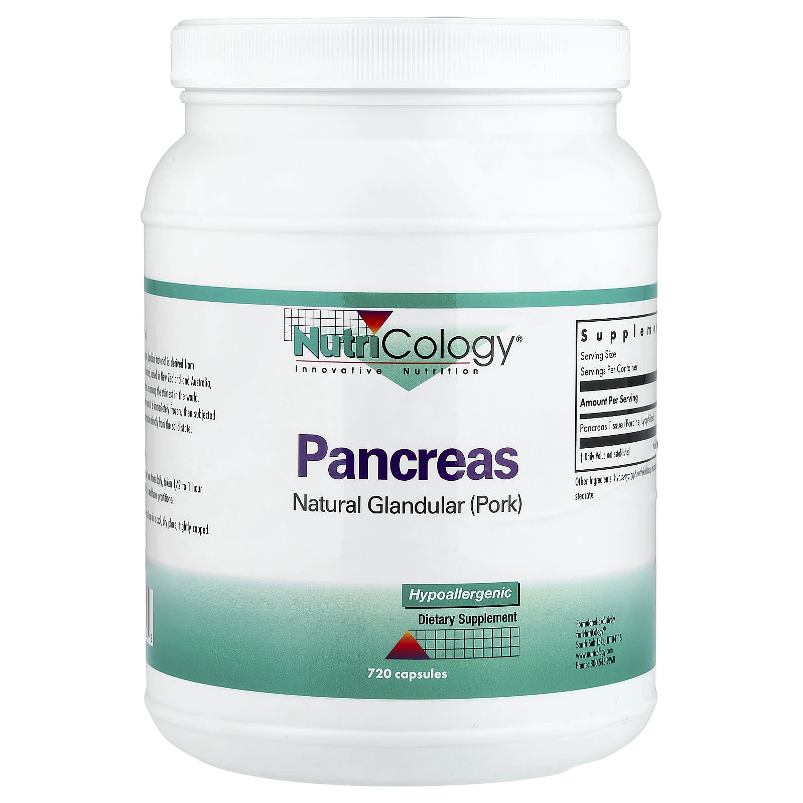 Nutricology Pâncreas Glandular Natural (Carne de Porco) 720 Cápsulas (425 mg por Cápsula) – Nutricology Suplementos Suplementos de órgãos animais Saúde Intestinal.