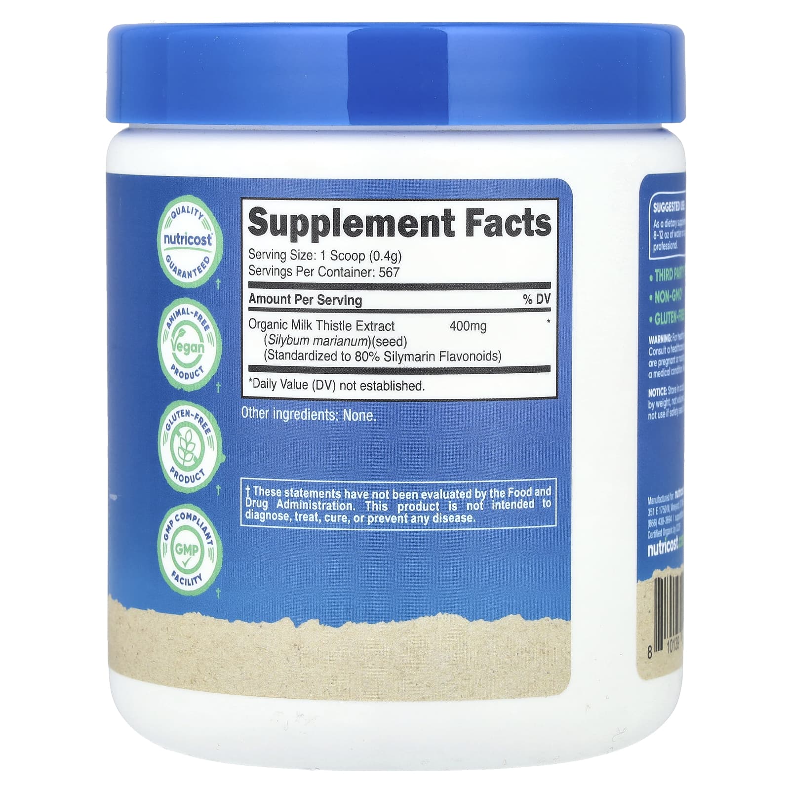 Nutricost Cardo-mariano Orgânico Sem Sabor 227 g (81 oz) – Nutricost Suplementos Ervas Cardo-mariano (Silimarina).