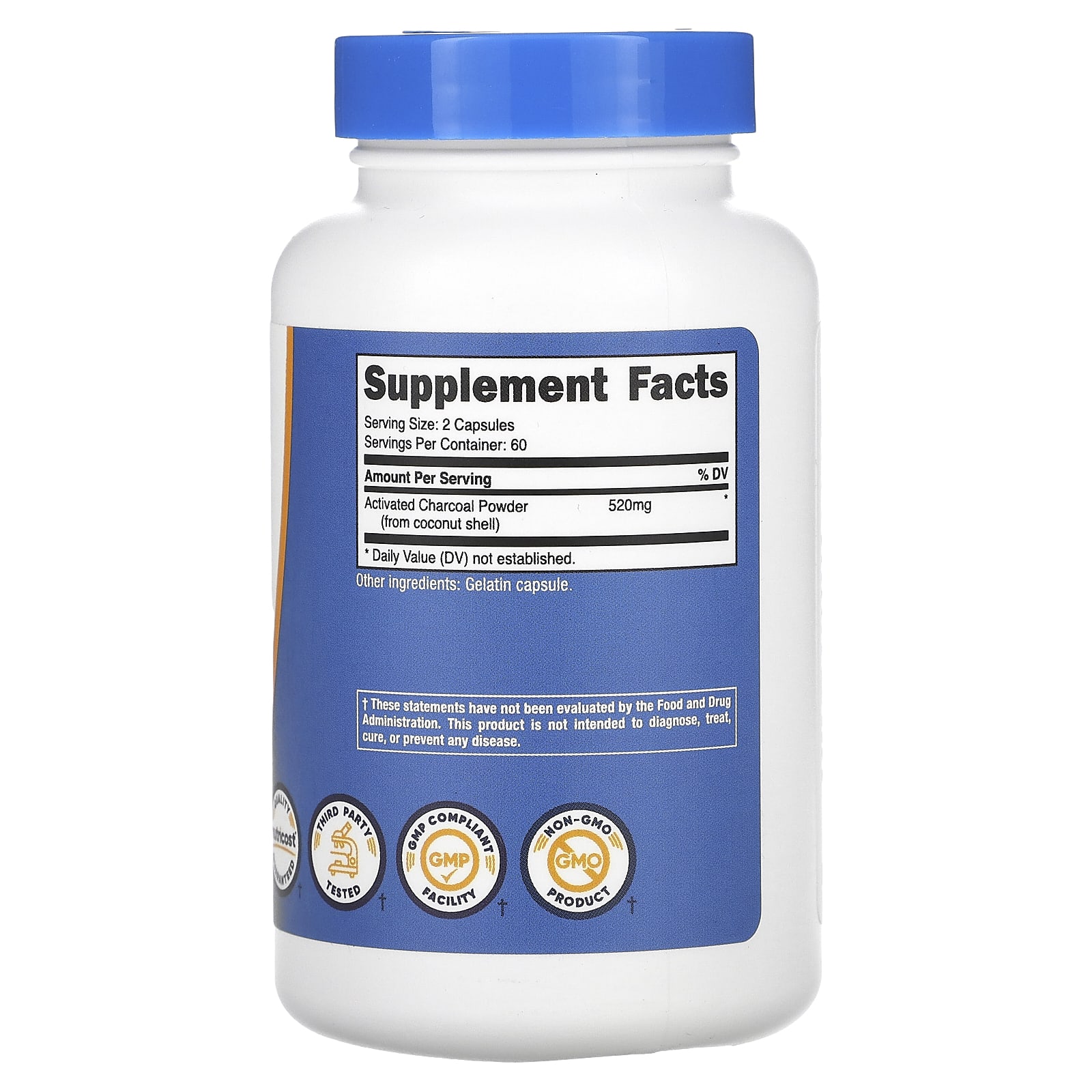 O carvão ativado é conhecido por suas propriedades absorventes. O Carvão Ativado Nutricost é feito com cascas de coco de verdade e tem 120 cápsulas (60 porções) por frasco. Cada cápsula contém 260 mg de carvão ativado (520 mg por porção). Eles são não OGM e sem glúten.