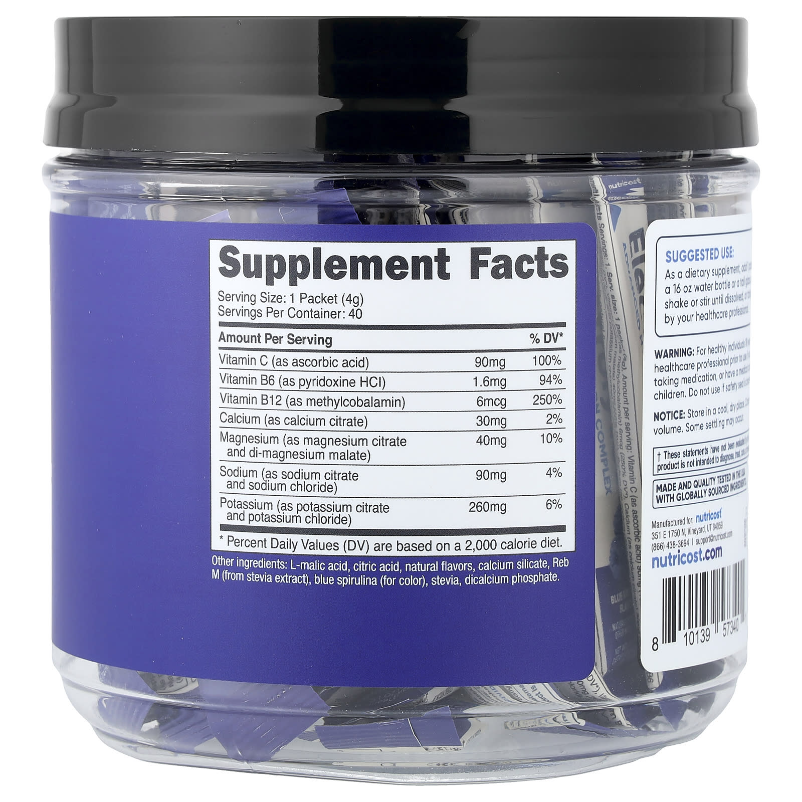 Nutricost Eletrólitos Complexo de Hidratação Avançado Framboesa Azul 40 Embalagens 4 g (014 oz) Cada – Nutricost Nutrição Esportiva Hidratação e Eletrólitos.