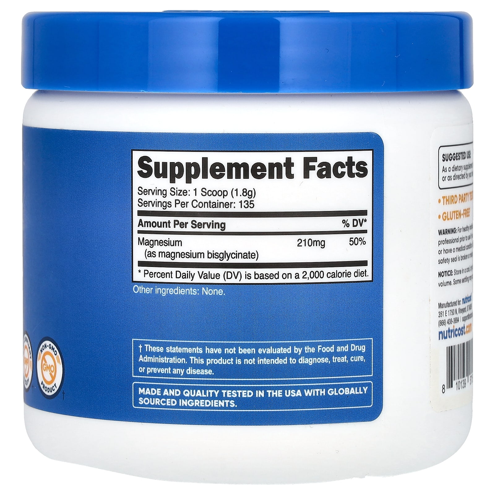 Nutricost Glicinato de Magnésio Sem Sabor 250 g (89 oz) – Nutricost Suplementos Minerais Magnésio Glicinato de Magnésio.