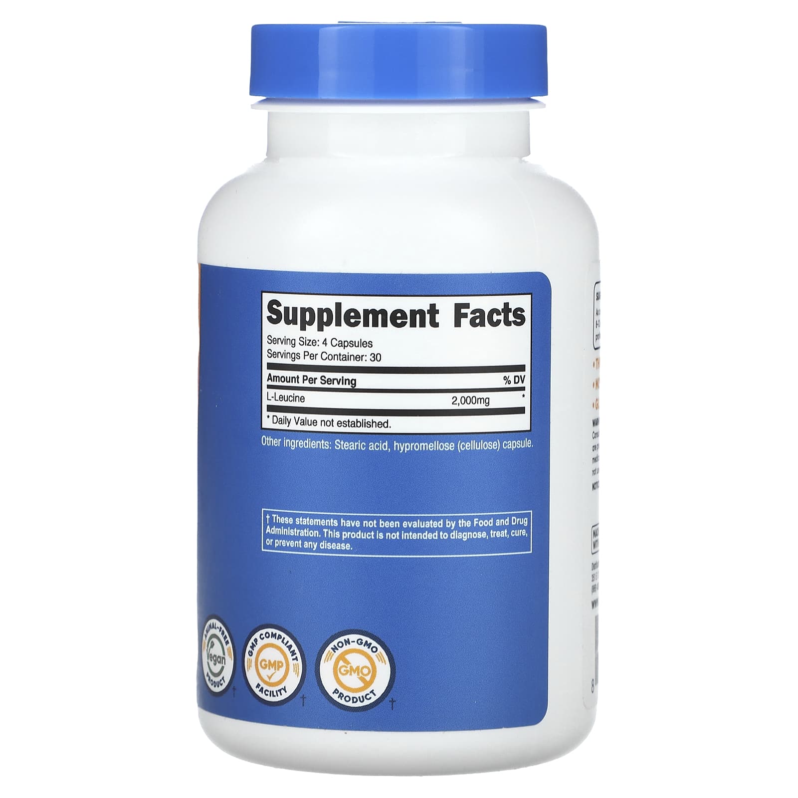 Nutricost, L-Leucina, 120 Cápsulas (500 mg por Cápsula) – Nutricost Suplementos Aminoácidos Leucina.
