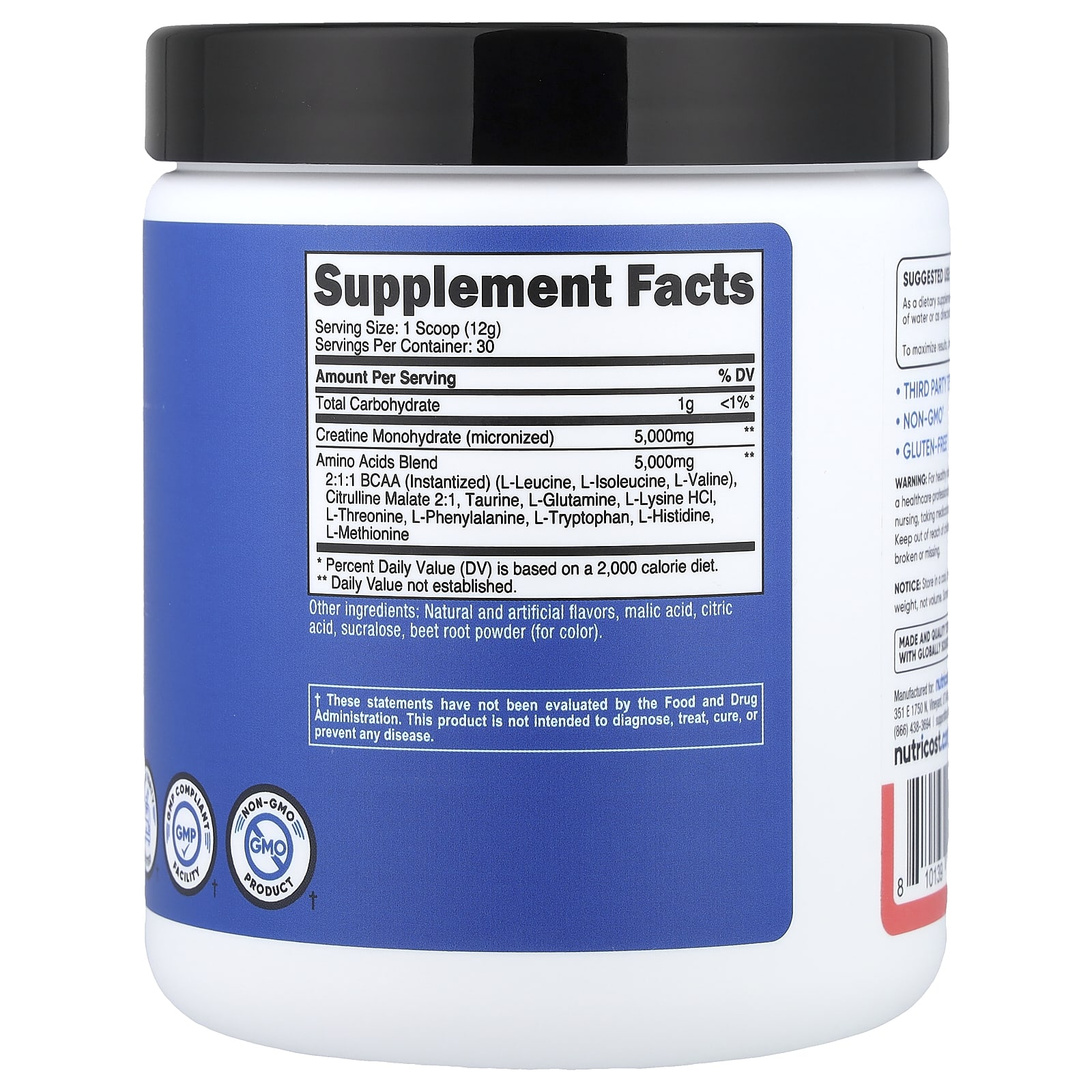 Nutricost Performance Creatina + Aminoácidos Melancia 369 g (132 oz) – Nutricost Nutrição Esportiva Creatina Monoidrato de creatina Suplementos Aminoácidos Misturas de aminoácidos.