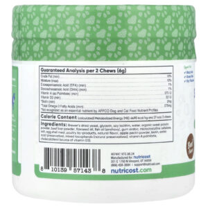 Nutricost Pets Auxílio à Pele e aos Pelos Para Cães Carne Bovina 60 Cápsulas Mastigáveis 180 g (64 oz) – Nutricost Pets Saúde dos pets Tratamentos e remédios para cães Cuidados para pele, pelo e patas dos cães.