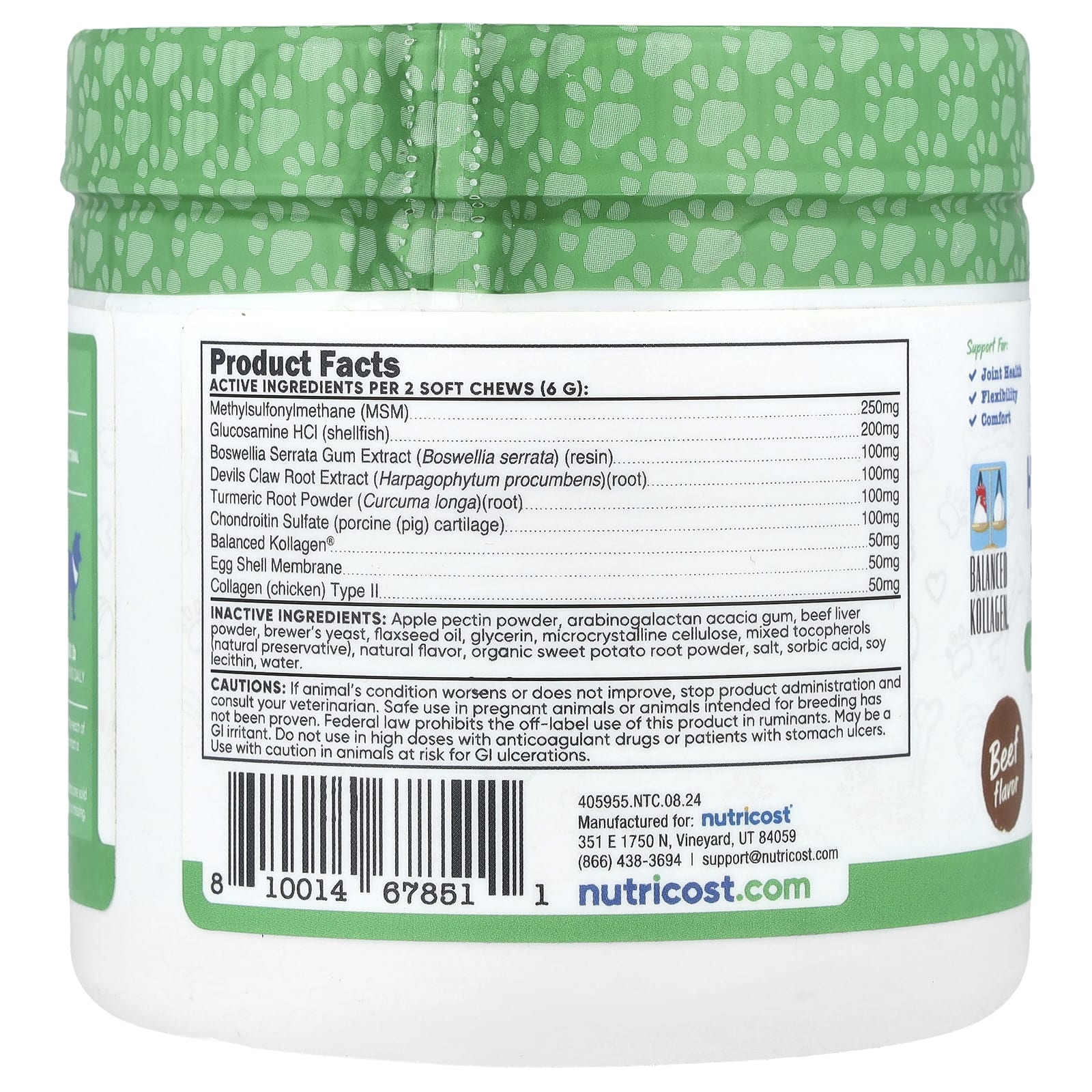 Nutricost Pets Auxílio para Quadri e Articulações Para Cães Carne Bovina 60 Cápsulas Mastigáveis 180 g (64 oz) – Nutricost Pets Suplementos para pets Suplementos para cães Apoio para quadril e articulações de cães Vitaminas e minerais para cães.