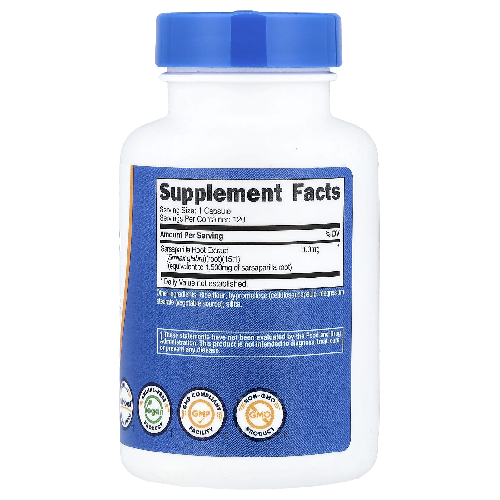 Fornece 100 mg de raiz de salsaparrilha em um extrato 15:1, que equivale a 1.500 mg de raiz de salsaparrilha.