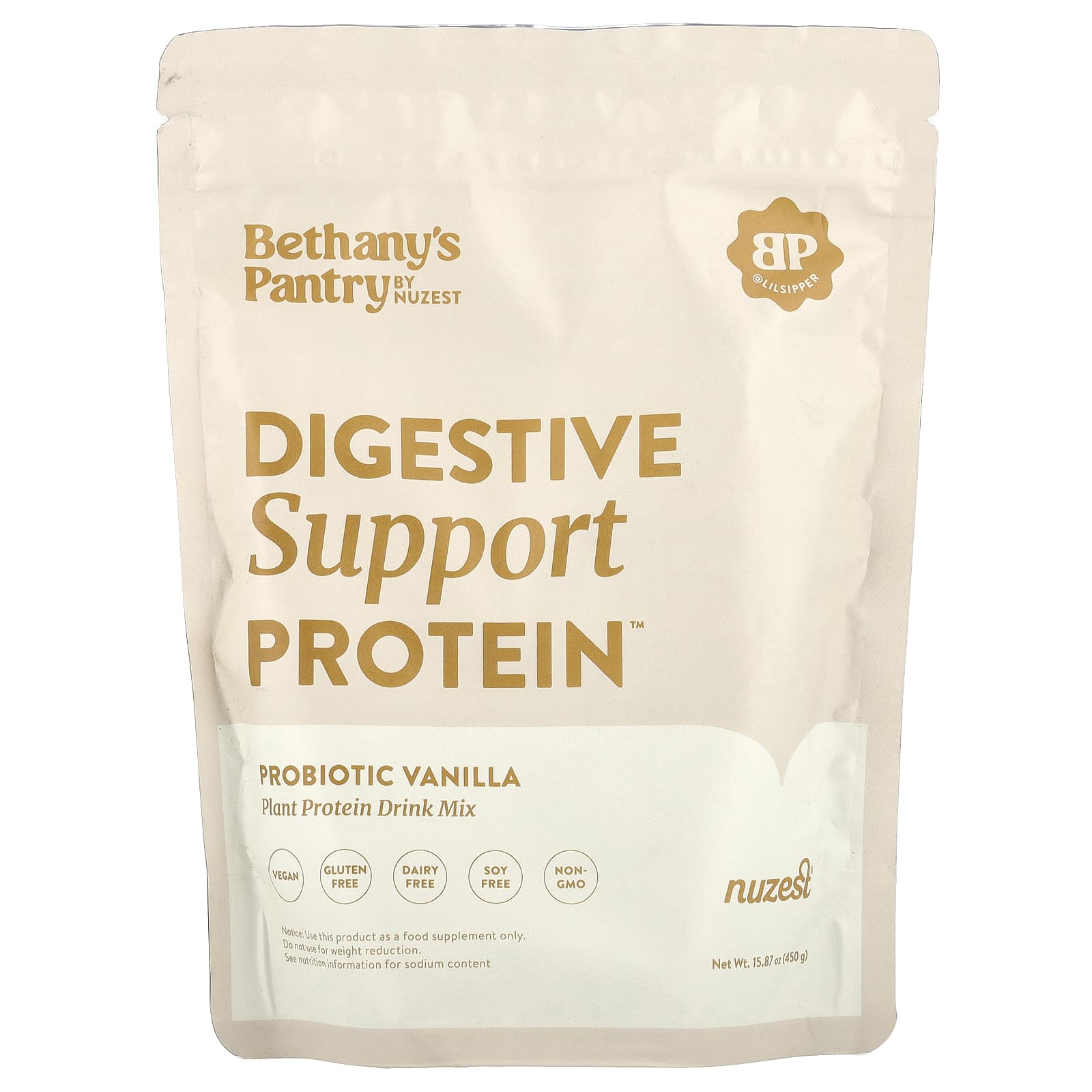 Oi, sou a Betany, fundadora do @lilsipper no Instagram. Eu me concentrei na saúde do meu intestino por muitos anos. Trabalhei com a Nuzest para criar minha própria linha de produtos de auxílio digestivo, especificamente formulados para promover uma digestão saudável. A proteína Probiotic Vanilla da minha proteína não contém adoçantes, sabores, gomas ou excipientes artificiais; além de a L-glutamina e os probióticos específicos contidos nesta fórmula serem adicionados para reforçar a saúde intestinal.