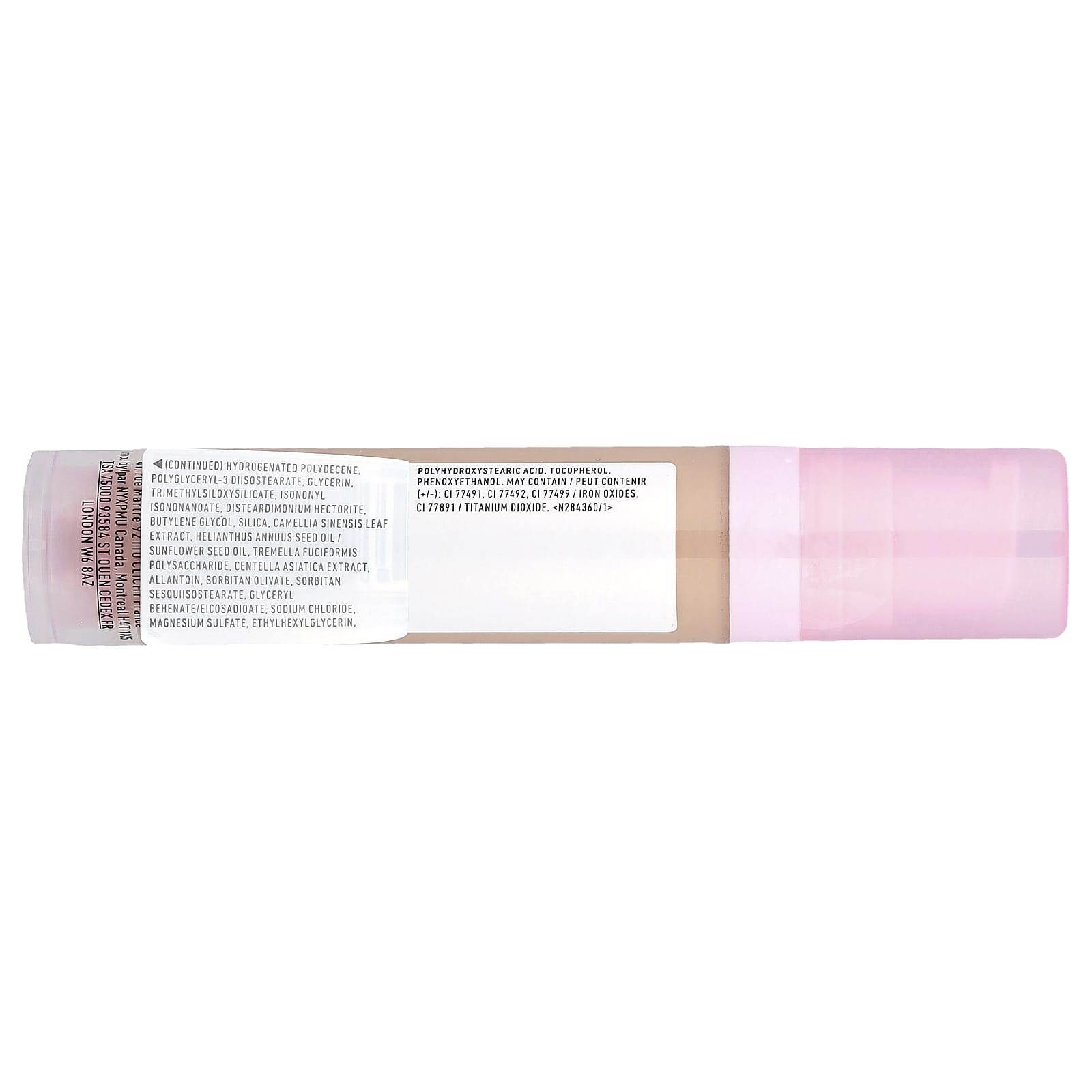 Água, poliisobuteno hidrogenado, hydrogenated polydecene, polyglyceryl-3 diisostearate, glicerina, trimethylsiloxysilicate, isononyl isononanoate, disteardimonium hectorite, butilenoglicol, sílica, extrato da folha de Camellia sinensis, óleo da semente de Helianthus annuus/óleo da semente de girassol, polissacarídeo de Tremella fuciformis, extrato de Centella asiatica, alantoína, sorbitan olivate, sorbitan sesquiisostearate, glyceryl behenate/eicosadioate, cloreto de sódio, sulfato de magnésio, ethylhexylglycerin, ácido polihidroxiesteárico, tocoferol, fenoxietanol. Pode conter (+/-): CI 77491, CI 77492, CI 77499/óxidos de ferro, CI 77891/dióxido de titânio.