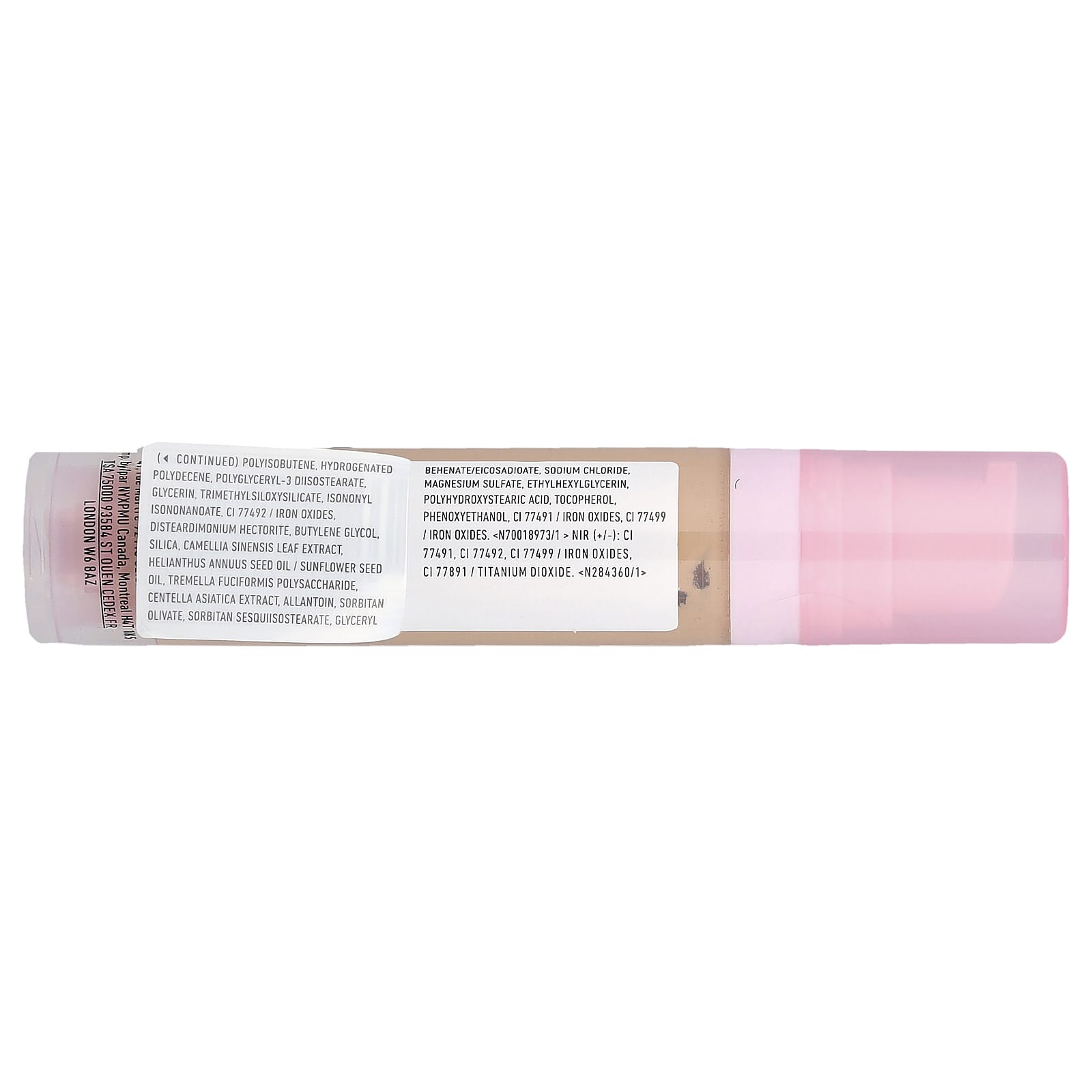 Água, dióxido de titânio, poliisobuteno hidrogenado, hydrogenated polydecene, polyglyceryl-3 diisostearate, glicerina, trimethylsiloxysilicate, isononyl isononanoate, CI 77492/óxidos de ferro, disteardimonium hectorite, butilenoglicol, sílica, extrato da folha de Camellia sinensis, óleo da semente de Helianthus annuus/óleo da semente de girassol, polissacarídeo de Tremella fuciformis, extrato de Centella asiatica, alantoína, sorbitan olivate, sorbitan sesquiisostearate, glyceryl behenate/eicosadioate, cloreto de sódio, sulfato de magnésio, ethylhexylglycerin, ácido polihidroxiesteárico, tocoferol, fenoxietanol, CI 77491/óxidos de ferro, CI 77499/óxidos de ferro, (+/-): CI 77491, CI 77492, CI 77499/óxidos de ferro, CI 77891/dióxido de titânio.
