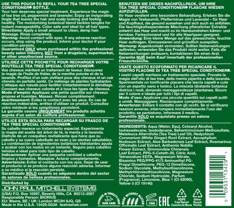 Condicionador especial Tea Tree, desembaraça, suaviza e suaviza, para todos os tipos de cabelo, 33,8 fl. oz. — A mistura botânica hidratante ajuda a suavizar, suavizar e combater os emaranhados — O formigamento refrescante revigora o couro cabeludo — A árvore do chá, a hortelã, a hortelã e a lavanda revigoram o couro cabeludo e deixam o cabelo cheiroso. A lavanda deixa o cabelo cheiroso — Cor segura, ideal para todos os cabelos tipos