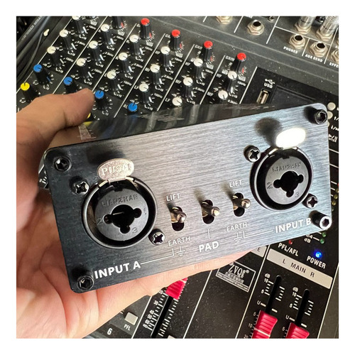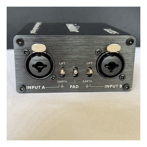 Isolador de áudio passivo de nível profissional de canal duplo, usando conector de isolamento de áudio de material Permalloy, para que o sinal seja completamente conectado. Entradas