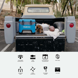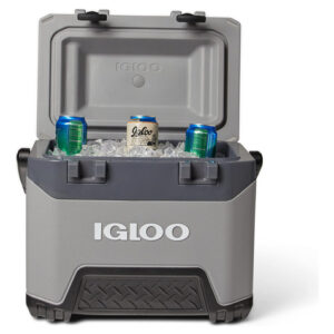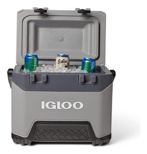 Refrigerador Igloo BMX Grey de 25 Qt – Coloque o tamanho em perspectiva: comporta 37 latas – Paredes com isolamento de espuma extra grossa e tampa isolada oferecem desempenho superior de retenção de gelo – A tecnologia Cool Riser melhora o desempenho de resfriamento ao afastar o corpo do refrigerador de superfícies quentes – Dobradiças grandes e hardware de aço inoxidável prolongam a vida útil do produto – A construção pesada moldada por sopro oferece durabilidade avançada