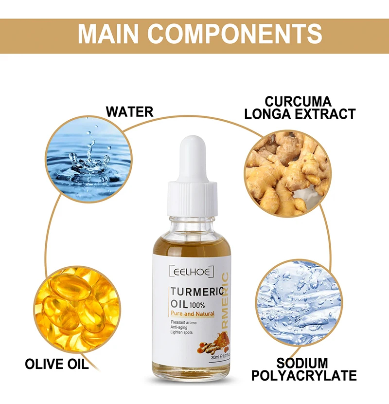 Tamanho da embalagem: 10,8* 3* 3 cm Lista de embalagem: 1* óleo essencial de cúrcuma 30ml 1* caixa de cores em inglês