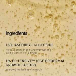 Ingredientes poderosos: contém 15% de glicosídeo de ascorbil, uma forma estável de vitamina C antioxidante que ajuda a clarear a pele e protegê-la de danos ambientais, junto com o peptídeo vegetal Fator de Crescimento Epidérmico (EGF), que regenera visivelmente a aparência da pele e melhora a elasticidade para uma aparência mais firme. Para todos os tipos de pele: Adequado para todos os tipos de pele, especialmente aquelas com hiperpigmentação.