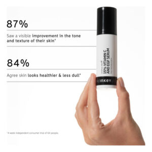 pele opaca: dê à sua pele uma dose dupla de clareamento e rejuvenescimento com 15% de soro de vitamina C e EGF.