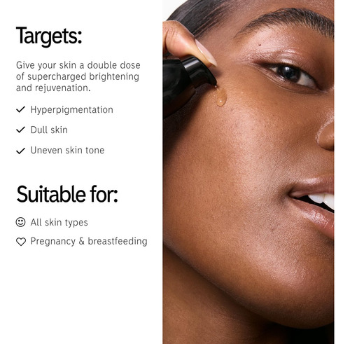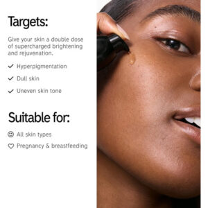 Este sérum potente e suave é formulado para reduzir a aparência de hiperpigmentação, melhorar a pele opaca e promover um tom de pele mais uniforme e radiante.