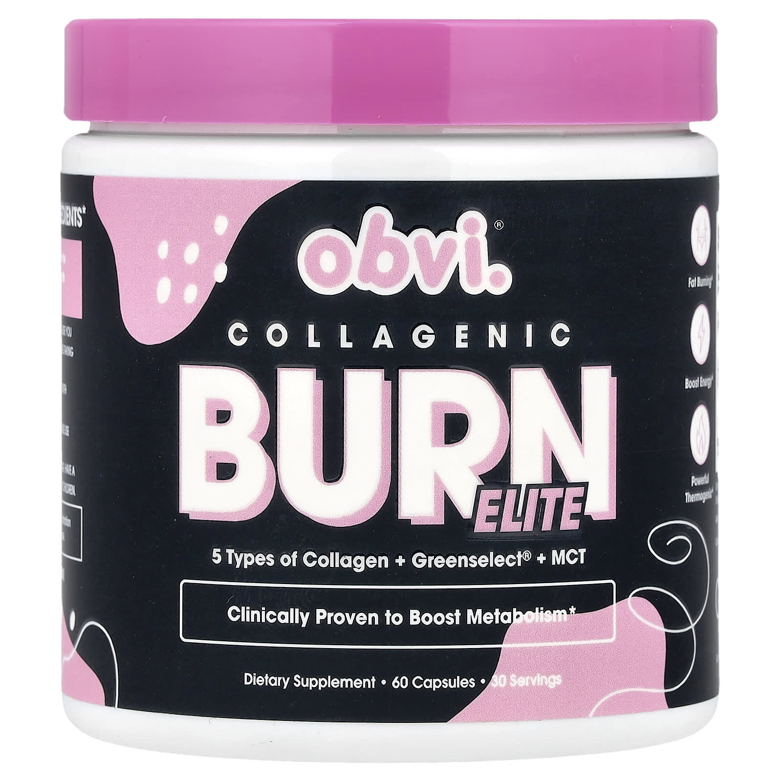 Obvi Collagenic Burn Elite 60 Cápsulas – Obvi Suplementos Ossos, Articulações e Cartilagem Colágeno, Suplementos Controle de peso Queimadores de Gordura.