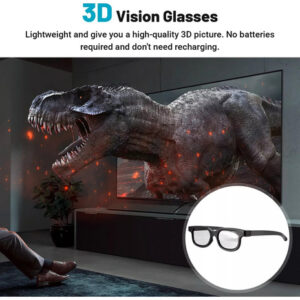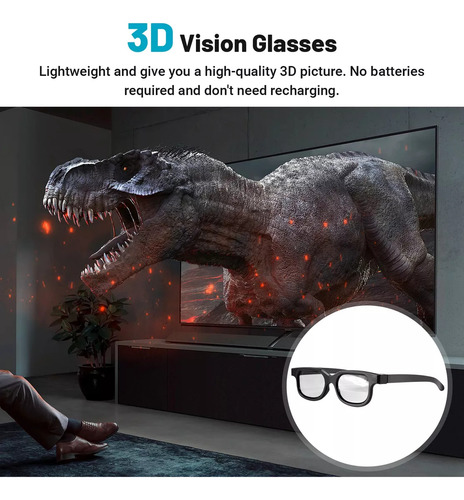 Baixo grau de desvio de cor, a borda dos óculos garante ângulos de visão mais amplos.: Óculos 3D não imersivos: