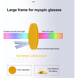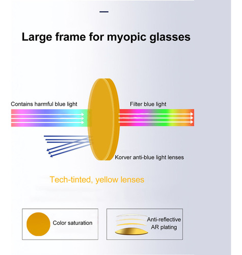 [Bordas foscas] As bordas das lentes de nossos óculos são polidas com um processo de congelamento para evitar o risco de arranhões. 4. [Ampla gama de usos] Esses óculos de luz azul podem ser usados por pessoas que geralmente precisam usar telefones celulares e computadores para evitar radiação, luz azul e cansaço visual.
