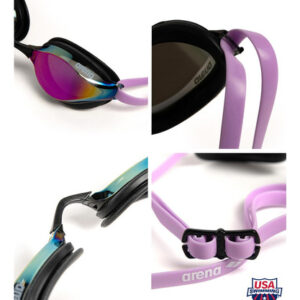 Óculos de natação unissex ARENA para adultos Python Racing para homens e mulheres Lente de espelho antiembaçante Max Comfort, alça dupla, violeta/preto/violeta — Óculos espelhados confortáveis, adequados para nadadores competitivos, projetados para máximo conforto e hidrodinâmica avançada para que você possa dar o melhor de si – A lente de luz elegante em forma de olho de cobra oferece o melhor desempenho hidrodinâmico, oferecendo uma visão otimizada, ampla e clara dos elementos competitivos – Mirror A lente rosada reduz o brilho do sol ao nadar ao ar livre e em piscinas bem iluminadas; também disponível em um – lente espelhada para todas as necessidades da concorrência – A lente protetora endurecida em policarbonato oferece máxima durabilidade e clareza, enquanto o revestimento especial elimina o vapor, resultando em um efeito antiembaçante para uma visão clara – Equipada com vedações de silicone adaptáveis e uma alça dupla ajustável para maior conforto e ajuste estável, e fornecida com três pontes nasais intercambiáveis para uma personalização perfeita