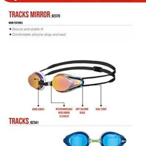 O Óculos espelho de pista da Arena é perfeito para corridas ou treinamentos. As Pistas oferecem proteção UV, bem como um ajuste de corrida seguro com lentes hidrodinâmicas de baixo perfil.