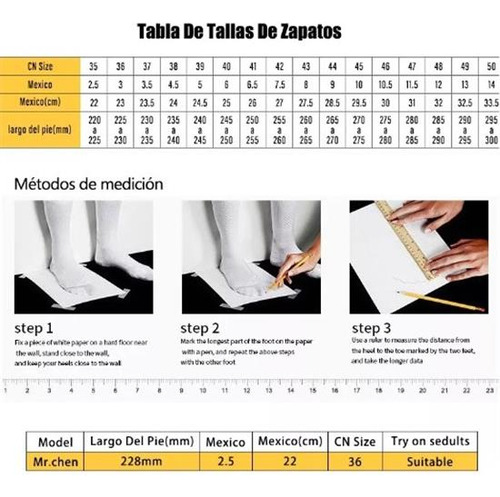 Meça o comprimento do seu pé antes de comprar e compre a opção correspondente de acordo com o comprimento do seu pé. Nossos sapatos combinam apenas com o sapato correspondente de acordo com o comprimento do pé. Este é o único critério.