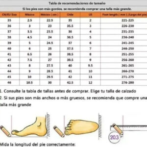 La lista de artículos es EU size, por favor comprar según la longitud de su pie en centímetros.