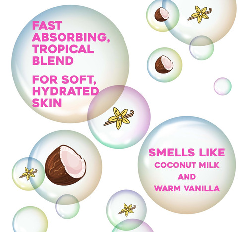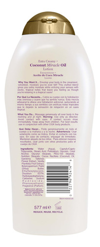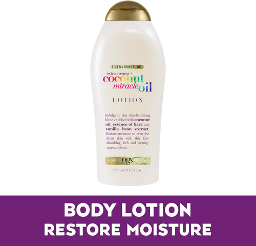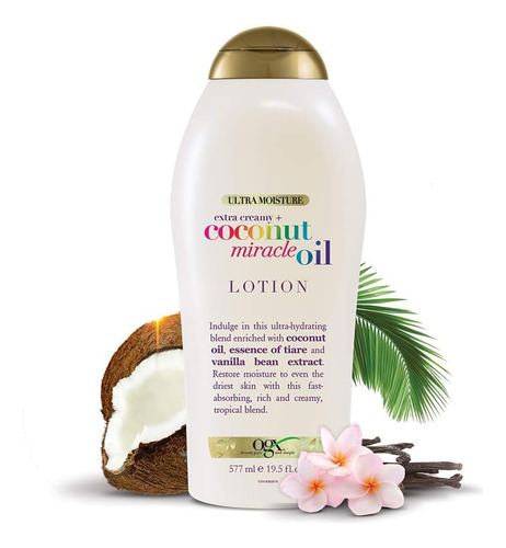 Hidrate a pele com a mistura ultra-hidratante de nossa loção corporal de óleo de coco. Livre de parabenos e surfactantes sulfatados, sua fórmula rica e de rápida absorção restaura a umidade até mesmo da pele mais seca. • HIDRATAÇÃO DIVINA: Nutra a pele seca e envie seus sentidos para uma fuga na ilha com esta loção corporal tropical, rica e cremosa, de rápida absorção. Infundido com óleo de coco, esta mistura restaura a hidratação essencial da pele. • SUAVIDADE E HIDRATAÇÃO: Delicie-se com esta mistura ultra-hidratante com óleo de coco, essência de tiare e extrato de baunilha. A fórmula não oleosa é rapidamente absorvida, deixando a pele macia e cheirosa. • BELEZA PURA E SIMPLES: os produtos OGX são inspirados na natureza. Não tentamos fazer o cabelo parecer “perfeito” porque preferimos fazer o cabelo parecer mais cheio, mais liso, mais encaracolado ou mais vigoroso e com um cheiro irresistível. • O QUE O CABELO DESEJA: Se você precisa de hidratação refrescante para cabelos cacheados, proteção para cabelos tingidos, creme de expansão ou pomada fosca, os produtos para cuidados com os cabelos da OGX são projetados para realçar o que você tem de melhor. • QUALIDADE REAL, BELEZA REAL: A aparência inatingível não nos inspira, mas a originalidade sim. As coleções de produtos para cabelos e cuidados com a pele da OGX estão aqui para ajudá-lo a ter a melhor aparência. Somos beleza, pura e simples. Color: Blanco Marca: OGX Dimensiones: 0.22 x 0.09 x 0.06mts. Peso del Producto: 0.63 Kilogramos. Peso de Envio: 0.63 Kilogramos. Modelo: