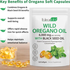 – Produto: Oil of Oregano Softgels, 120 Count 2 in 1 6000mg Oil of O…