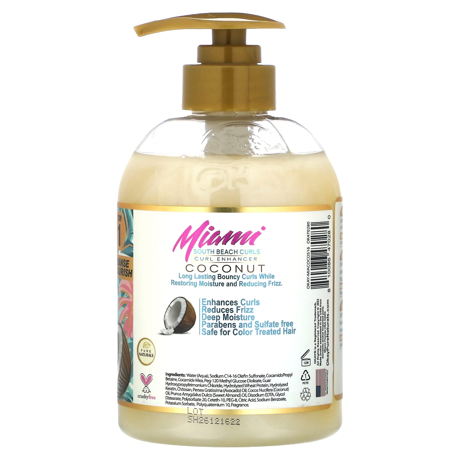 Okay Pure Naturals Cachos de Miami South Beach Shampoo Intensificador de Cachos Coco 473 ml (16 oz) – Okay Pure Naturals Cuidados Pessoais Cabelos Shampoo Beleza Beleza por Ingrediente Cuidado para a pele com queratina.