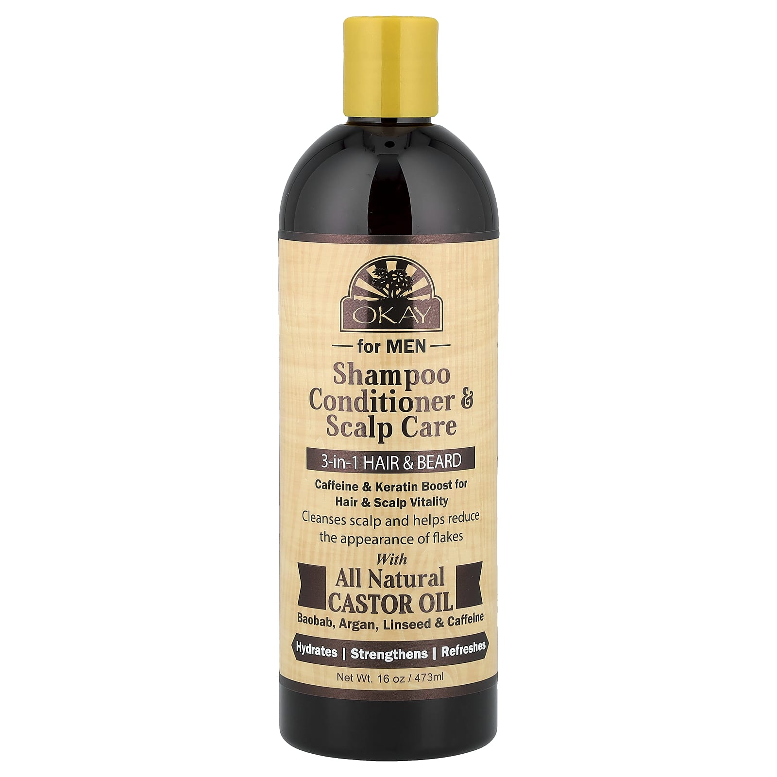 Okay Pure Naturals For Men Shampoo Condicionador e Cuidados com o Couro Cabeludo Cabelo e Barba 3 em 1 473 ml (16 oz) – Okay Pure Naturals Cuidados Pessoais Cuidados Masculinos Shampoo e Condicionador Masculino Beard Care.