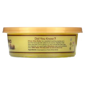 Não refinado, feito com a noz da árvore de Karité africana. OKAY Manteiga de Karité Africana é uma manteiga rica que tem sido usada por seus muitos benefícios para a pele e o cabelo.