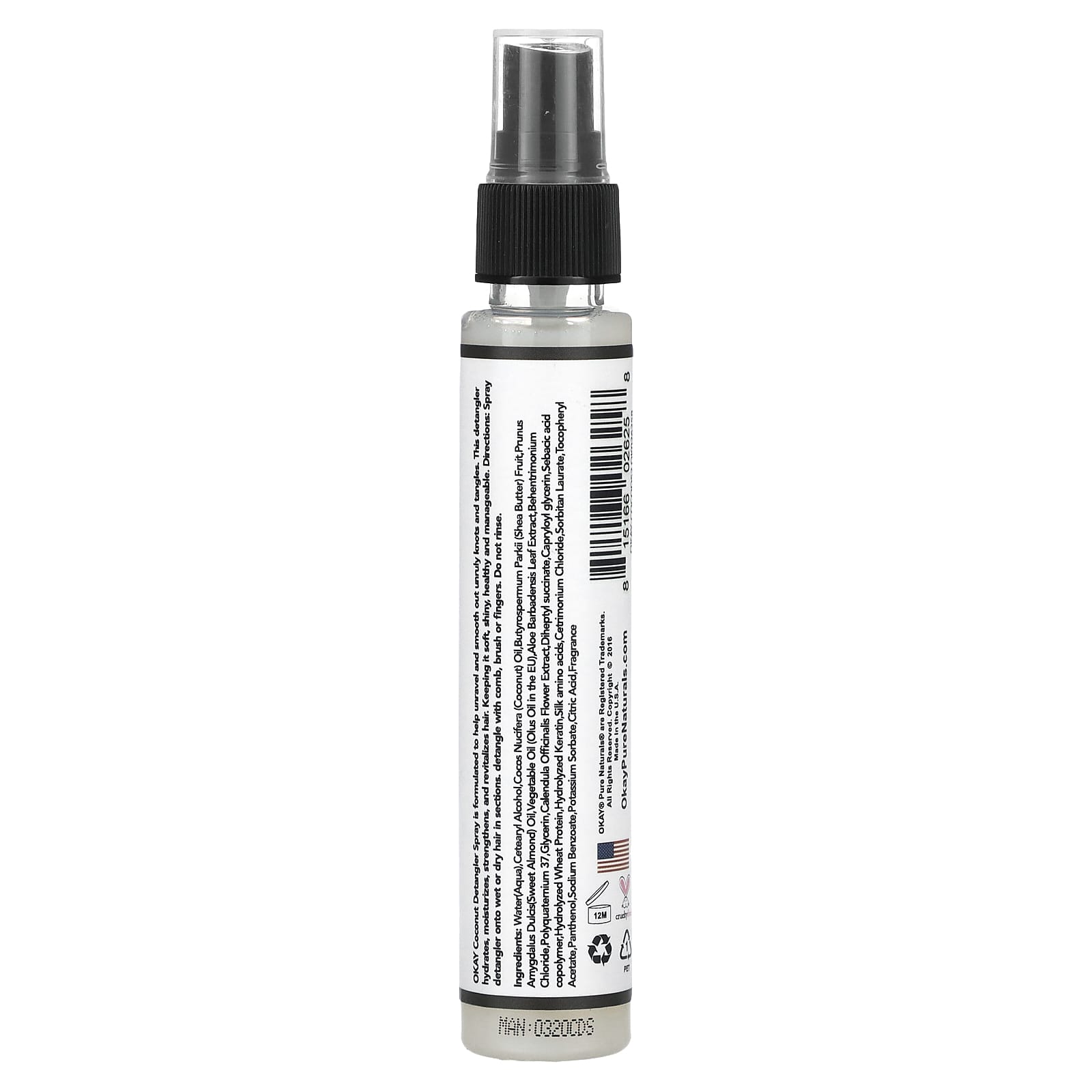 Okay Pure Naturals Spray Desembaraçante de Coco 59 ml (2 fl oz) – Okay Pure Naturals Cuidados Pessoais Cabelos Desembaraçador Beleza Beleza por Ingrediente Cuidado para a pele com queratina.