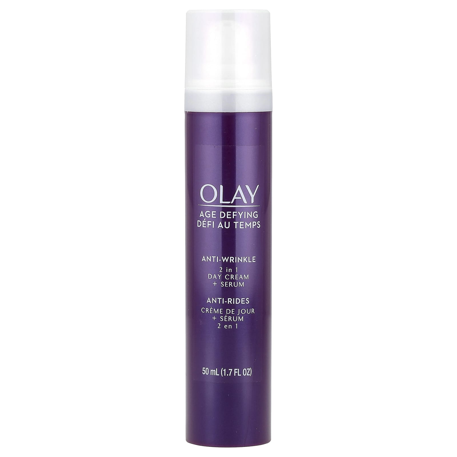 O Creme Diurno + Sérum Antienvelhecimento 2 em 1 da Olay combina habilmente um creme antirrugas com um sérum firmador que hidrata para reduzir a aparência de linhas de expressão e firma a aparência da sua pele – tudo em um produto simples.