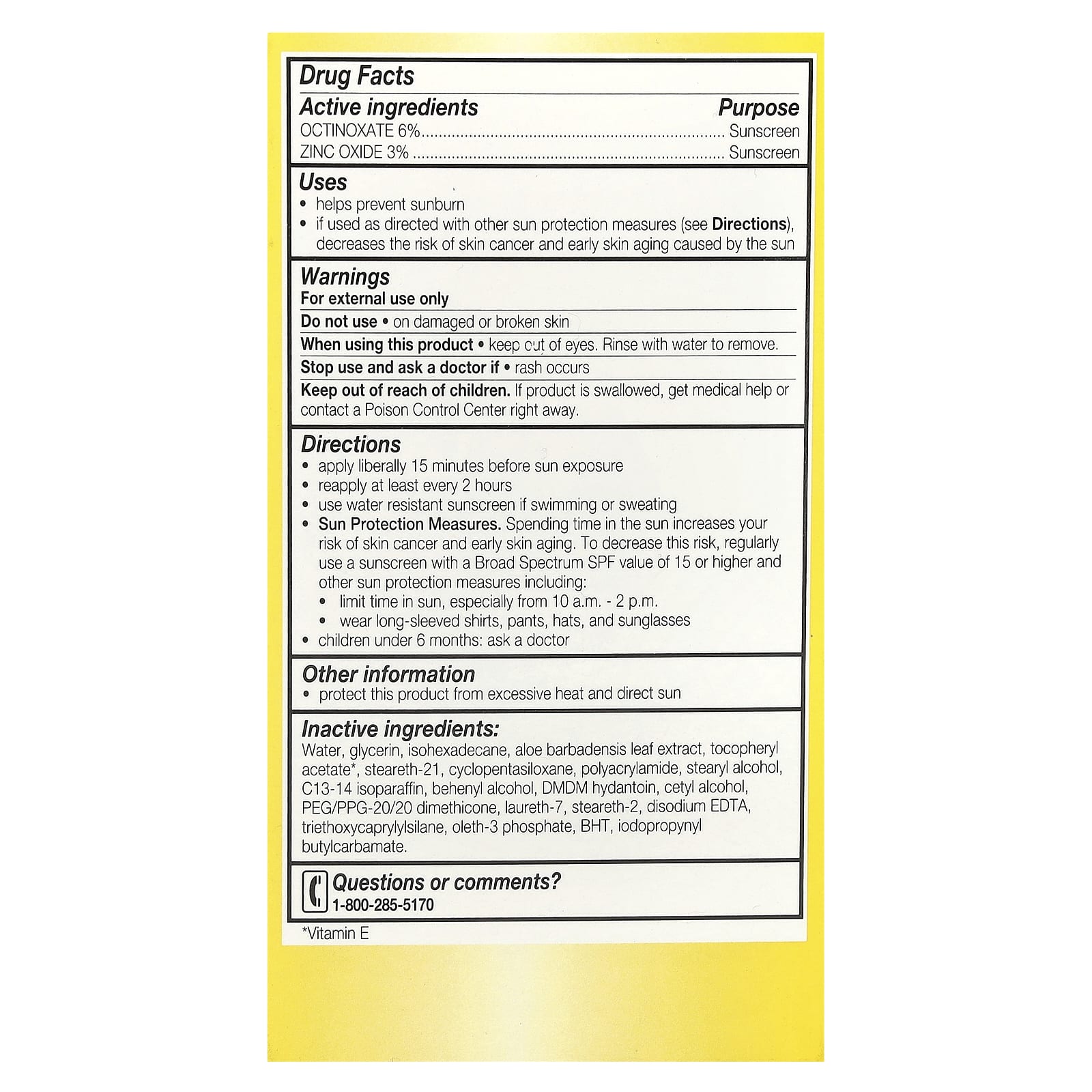 | Água, glicerina, isohexadecano, extrato da folha de Aloe barbadensis, acetato de tocoferol*, steareth-21, decametilciclopentasiloxano, poliacrilamida, álcool estearílico, isoparafina c13-14, behenyl alcohol, dmdm hidantoin, álcool cetílico, peg/ppg-20/20 dimethicone, laureth -7, steareth-2, edetato dissódico, triethoxycaprylylsilane, fosfato de oleth-3, bht, iodopropynyl butylcarbamate. *Vitamina E |