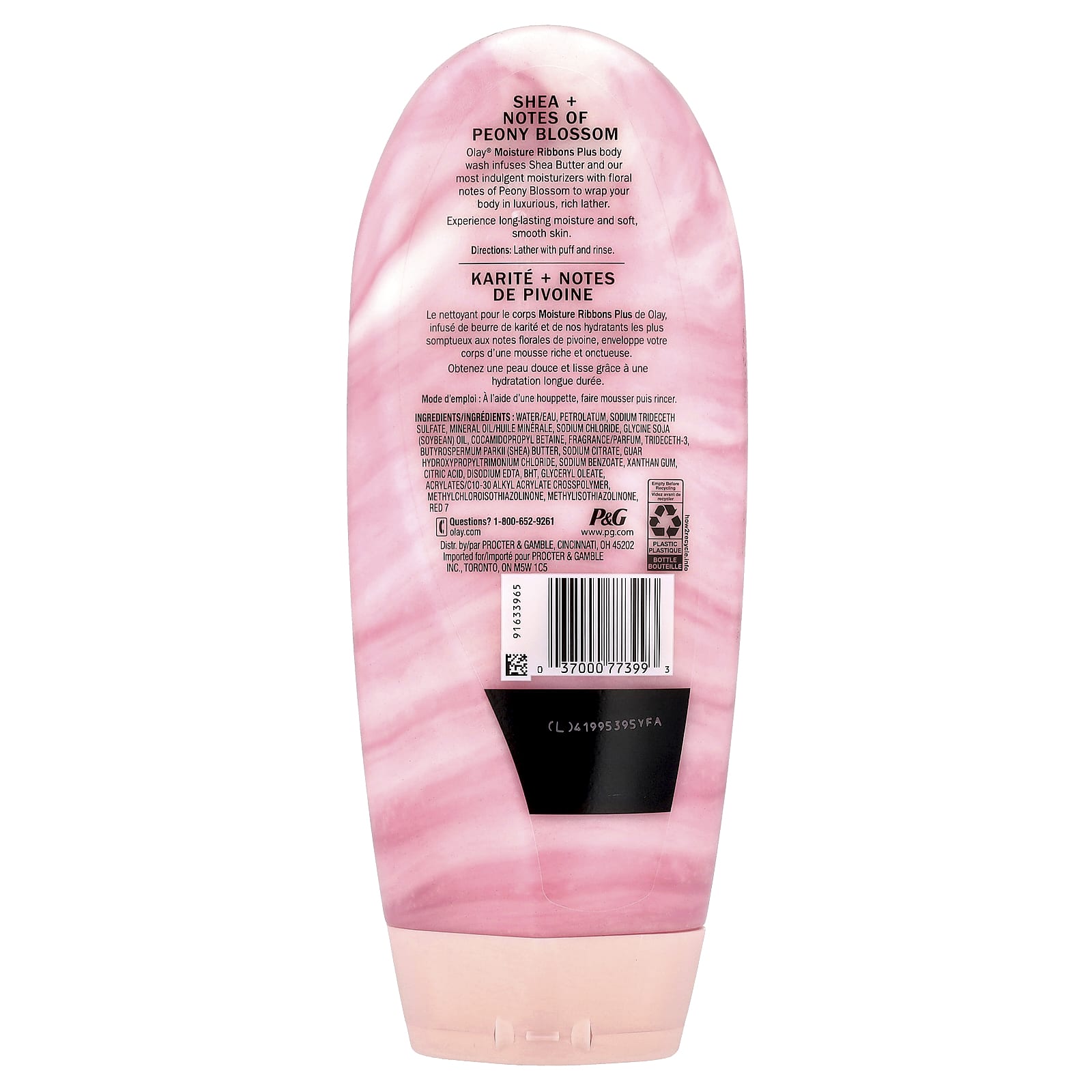 O sabonete líquido Olay® Moisture Ribbons Plus infunde Manteiga de Karité e nossos hidratantes mais suaves com notas florais de Flor de Peônia para envolver seu corpo em uma espuma abundante e abundante.