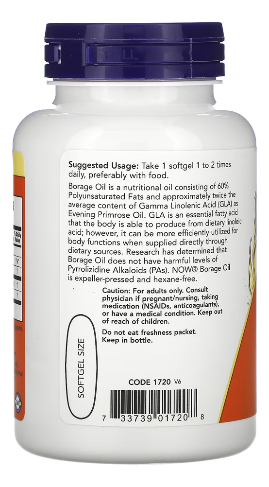 Óleo Borage (Borragem) 1000mg Now Foods 60Soft Produto Importado